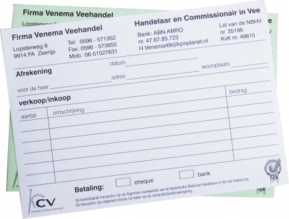 De sets zijn te verkrijgen in 2-voud, 3-voud, 4-voud en meer. Een 2-voud houdt in dat de tekst op 2 pagina’s komt. Bijvoorbeeld voor uw administratie en die van uw klant. Een 3-voud heeft 3 vellen. Enzovoort. Er zijn verschillende meervouden mogelijk, afhankelijk van het gebruik en de wens.